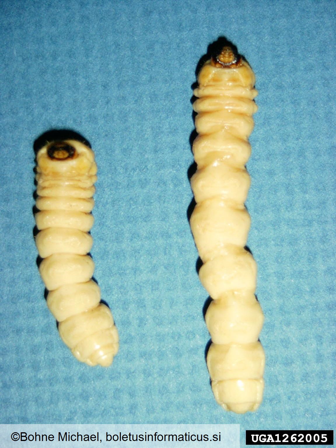 Naziv: azijski kozliček (Anoplophora glabripennis) Opis: ličinka Avtor slike: Bohne Michael Datum zajetja slike: 06.12.2010 Lokacija: Združene države Amerike
