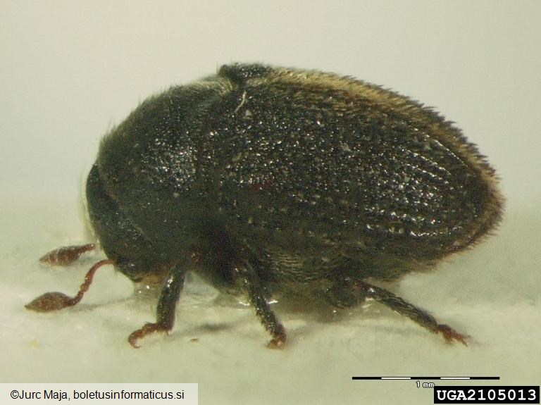 Naziv: mali črni jesenov ličar (Hylesinus oleiperda) Opis: odrasel osebek, pogled s strani, iz zbirke Prirodoslovnega muzeja Slovenije Avtor slike: Jurc Maja Datum zajetja slike: 29.10.2010 Lokacija: Slovenija