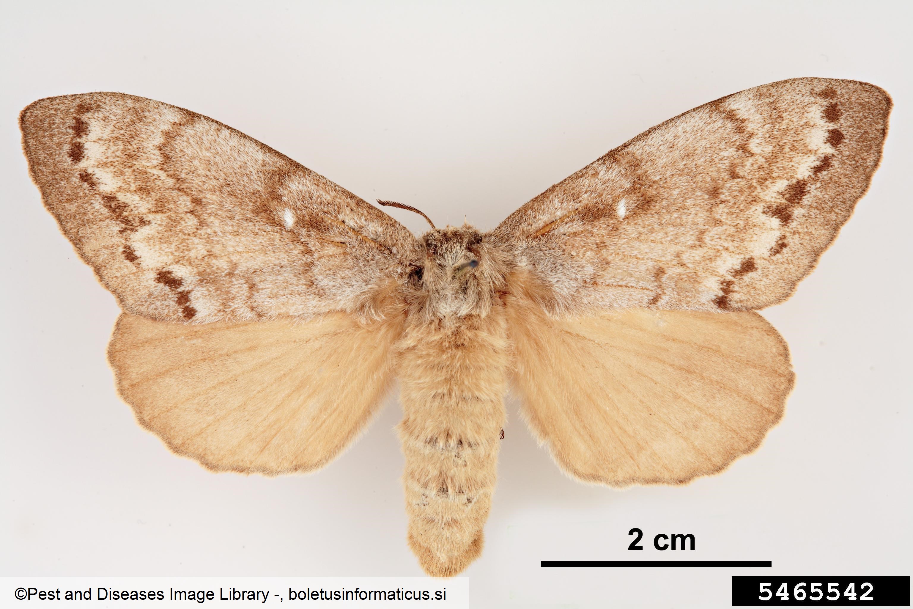 Naziv: sibirska svilena kokljica Opis: samica z zgornje strani Avtor slike: Pest and Diseases Image Library - Datum zajetja slike: 19.01.2016